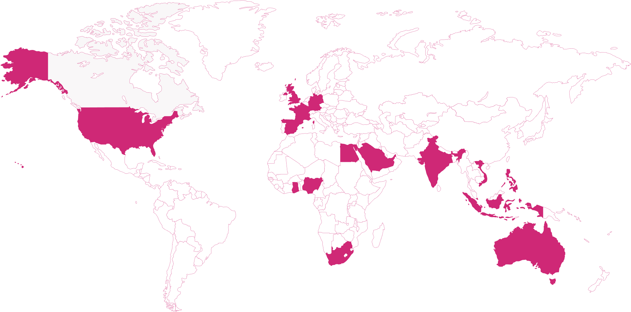 Asia-Pacific: India, Singapore, Vietnam, Philippines, Indonesia, Australia